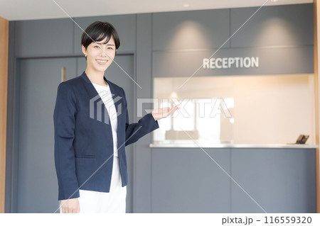 ホテルで受付をする若い女性 撮影協力:LINK FOREST