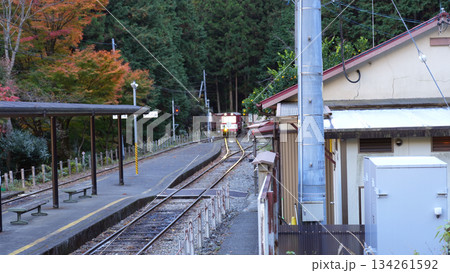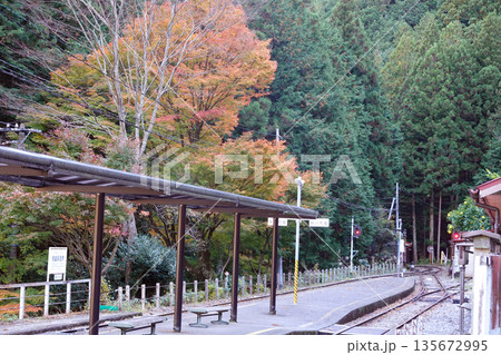 川根本町の秋の接岨峡温泉駅のホームの風景(静岡県)