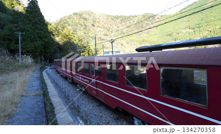 静岡県榛原郡川根本町にある大井川鐡道の奥大井湖上駅と接岨峡温泉駅の間の車両と線路