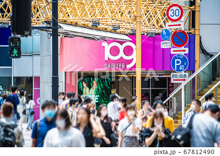日本の東京都市景観 渋谷109前・マスク姿(CECIL McBEE全43店閉店へ)