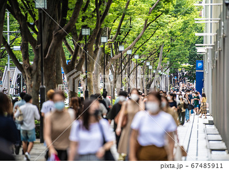 日本の東京都市景観 東京・表参道(マスク姿で溢れる並木道)=7月12日