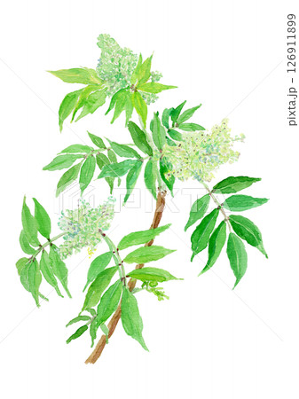 ニワトコ Sambucus racemosa の花の水彩イラスト