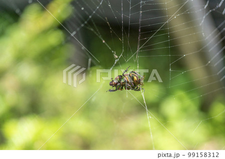 蜘蛛の巣に掴まった昆虫や木の実