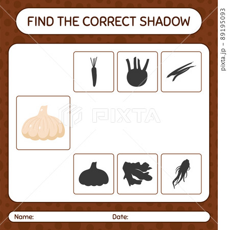 Find the correct shadows game with garlic. worksheet for preschool kids, kids activity sheet