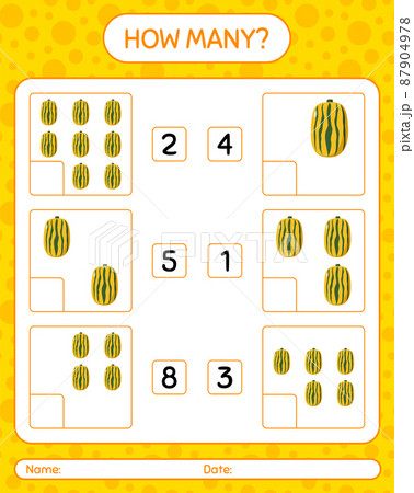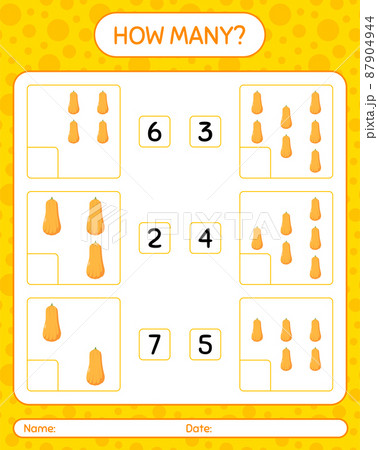How many counting game with squash. worksheet for preschool kids, kids activity sheet, printable worksheet