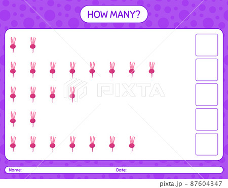 How many counting game with turnip. worksheet for preschool kids, kids activity sheet, printable worksheet