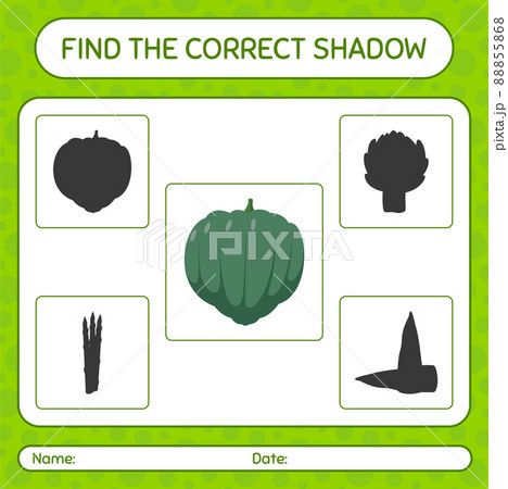 Find the correct shadows game with acorn squash. worksheet for preschool kids, kids activity sheet
