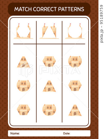 Match pattern game with sand palace. worksheet for preschool kids, kids activity sheet