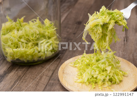 ザワークラウト キャベツを塩で揉み込む ザワークラウトを作る工程