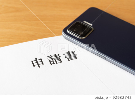 申請書とスマホ 提出書類 手続き書類とスマートフォン オンラインで行政手続