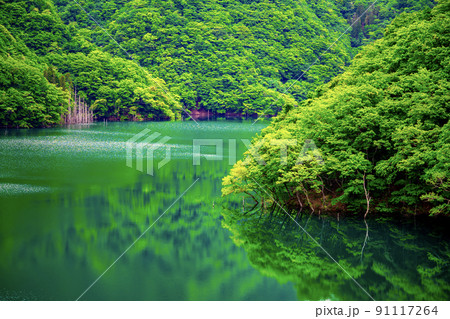 岐阜県揖斐川町の青い空と徳山ダム湖