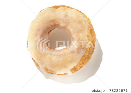 ハニーグレーズドーナツを夏っぽい光と白背景で俯瞰撮影(切り抜き素材)