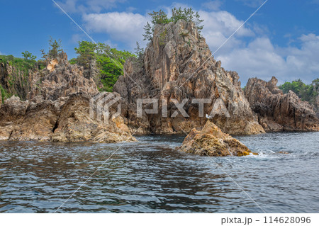 佐渡島の尖閣湾の遊覧船と船着き場