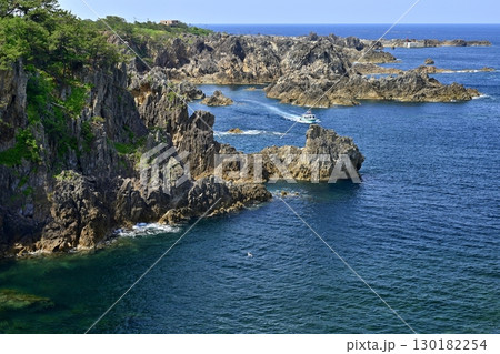 佐渡島の尖閣湾の遊覧船と船着き場