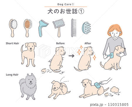 犬のブラッシングに関するイラストセット