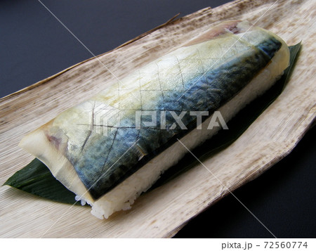 寿司下駄に盛り付けられた鰻の姿寿司を黒背景で撮影