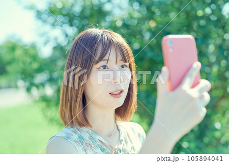 スマートフォンで通話する若い女性