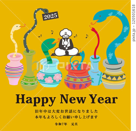 【メール用_LINE用_スマホ用_携帯電話用】年賀状 蛇つかい