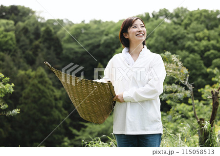編みかごを持つ女性