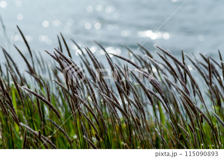 信濃川・やすらぎ堤の雨上がりの茅(ちがや)