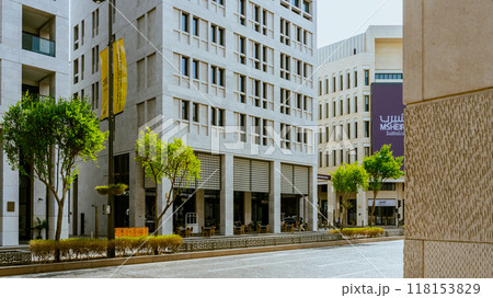 Sunny exterior view of the downtown cityscape
