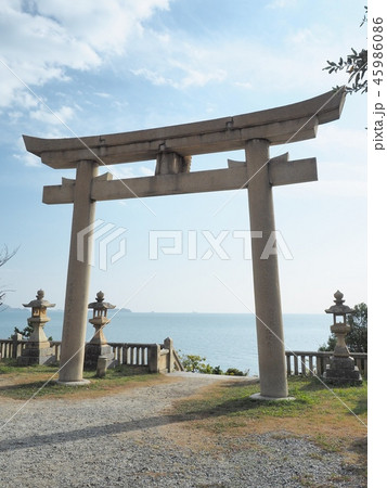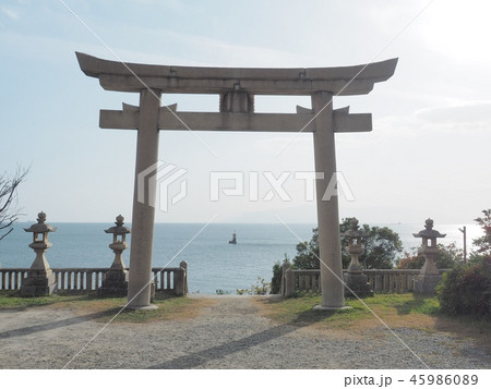 鳥居越しに海が望める伊和都比売神社 赤穂御崎