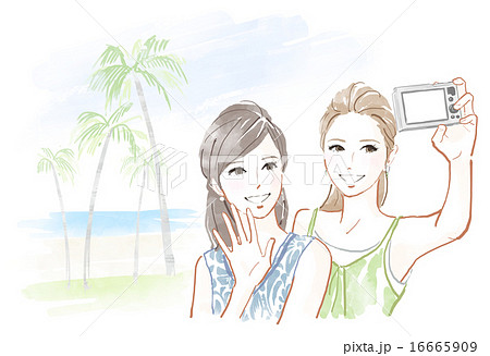 カメラで写真をとる2人の女性