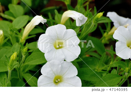 三鷹中原に咲く緑色と紫複色のペチュニア