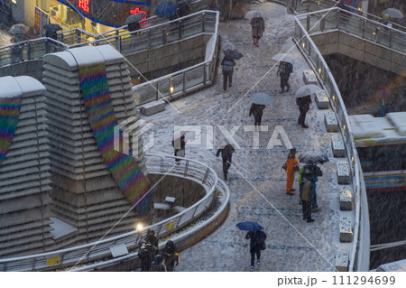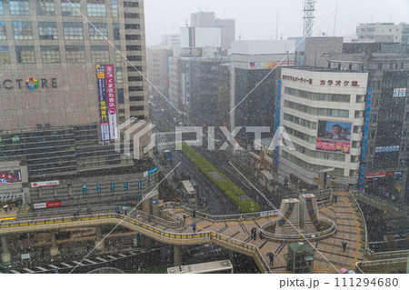 大雪の八王子駅北口 大雪中継のテレビクルー