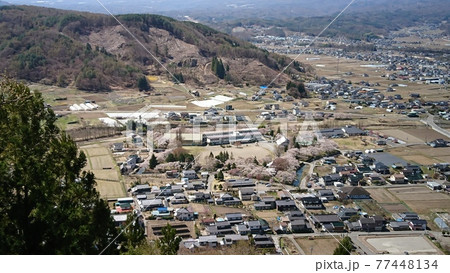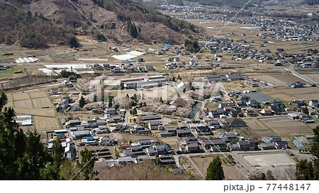 展望台からの桜咲く龍岡城五稜郭(2021年4月)