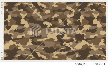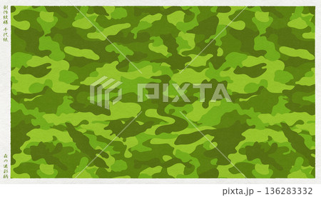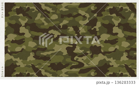 緑のカモフラージュを版画風に描いた、和紙の千代紙
