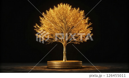 large tree with a shadow under it, isolated on a transparent background, 3D illustration, cg render