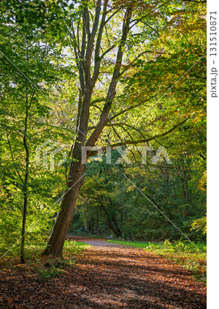 Cyclists on a dirt road through a forest, enjoying a sunny day.