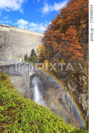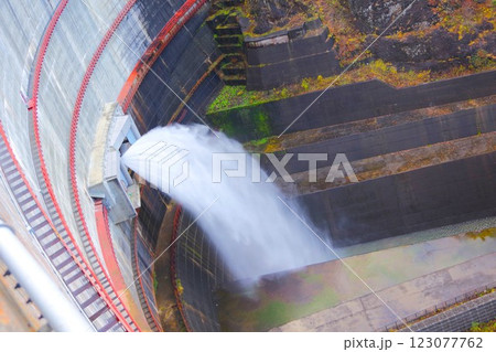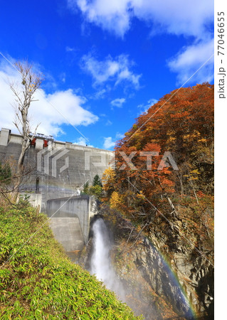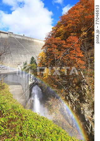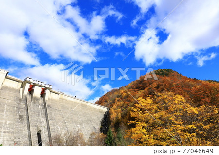 日本 北海道札幌市南区定山渓の定山渓ダムによって出現した人造湖、さっぽろ湖と紅葉