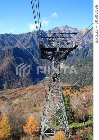 新穂高第2ロープウェイの支柱と笠ヶ岳