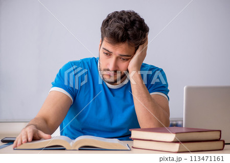 Boy Reading Open Book for Exam Preparation Education Vector Illustration