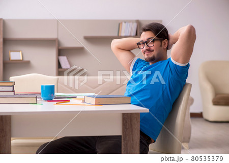 Young male student preparing for exams at home