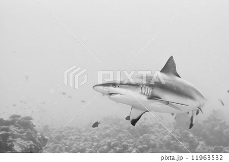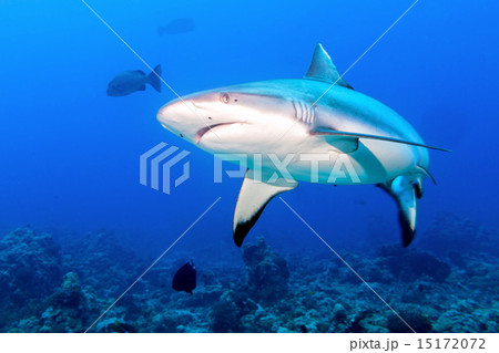 Grey shark jaws ready to attack in the blue