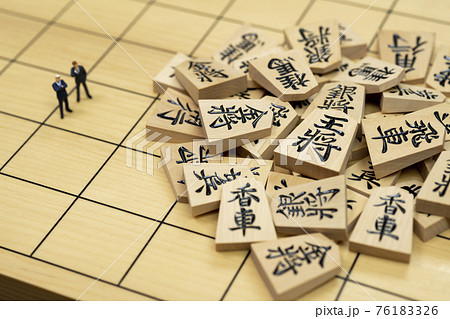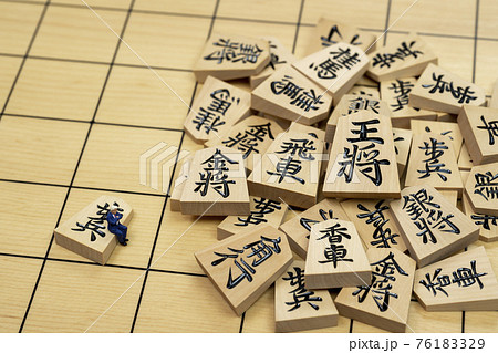 将棋の駒とミニチュアのビジネスマン
