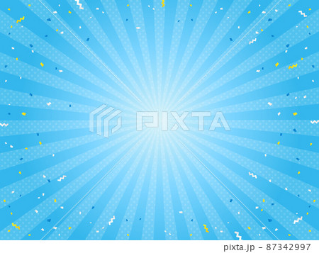 紙吹雪×集中線×ドットの水色フレーム素材(横向き)