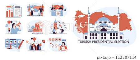Turkey 2023 presidential election. Democratic procedure, turkish citizens deliberate and decide country's future by the electoral process. People choosing their leader. Flat vector illustration