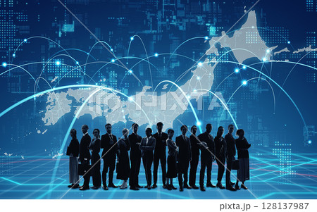 日本地図と多国籍の人々 バナー・広告向け横長ビジュアル