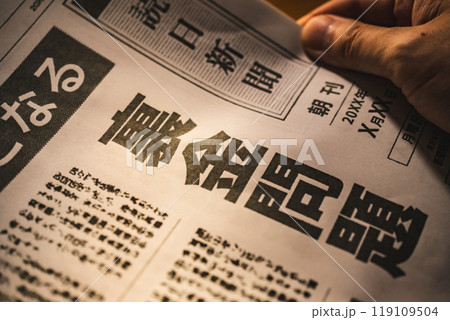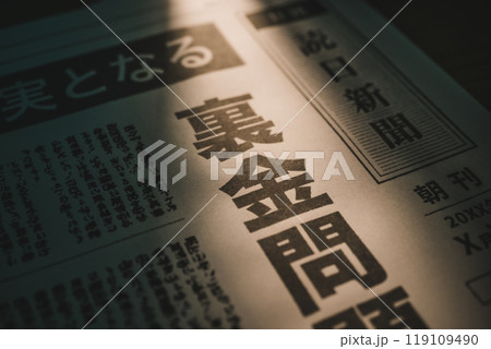 新聞の報道(著作権を侵害しない架空の新聞です。撮影用に制作)