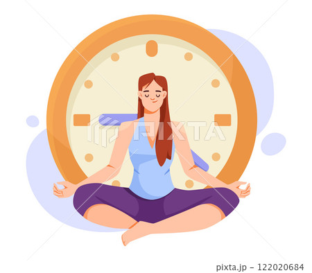 Woman and Time Management with Clock Dial Sit and Meditate Vector Illustration