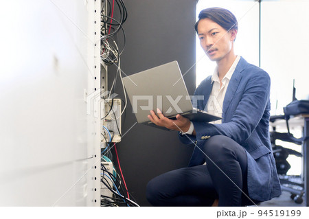 社内ネットワークをチェックするビジネスマン 情シス ビジネスイメージ