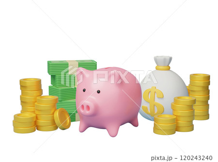 A young woman teaches how to put coins in a piggy bank start a growing business for success and save for retirement concept