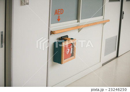 壁に設置された医療機器(AED 自動体外式除細動器)