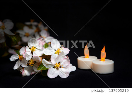 Candles and Flowers on a Dark Background for Remembering a Person or Occasion