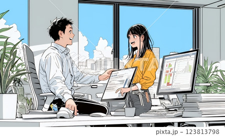 OJT:オフィスで、部下(後輩)を指導するマネージャー