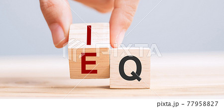 Business man hand change wooden cube block from IQ to EQ, balance between intelligence quotient and emotional intelligence concepts